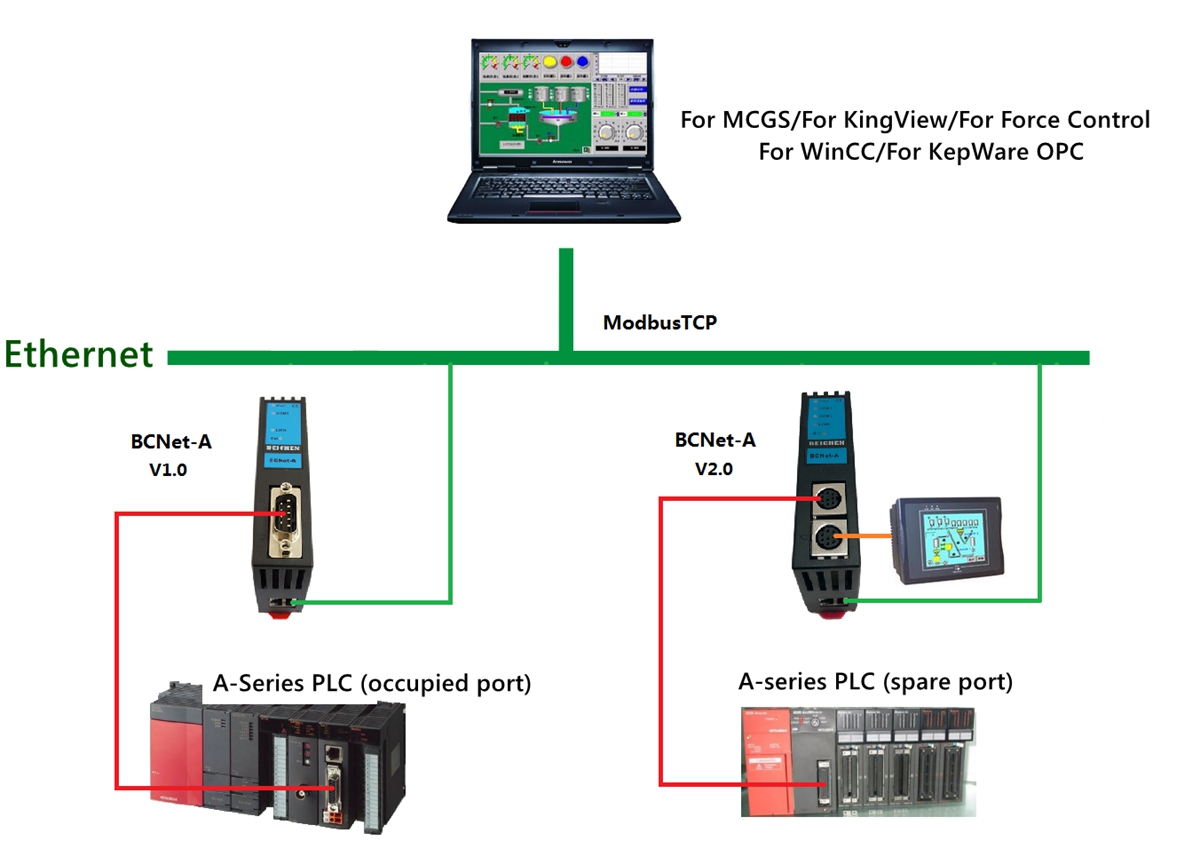 - BCNet-A is an economical Ethernet communication processor, which is designed to meet the increasing needs of factory equipment informatization (equipment Network monitoring and production management). It is used for Ethernet data acquisition for Mitsubishi A-series PLC, which is very convenient to build a production management system.