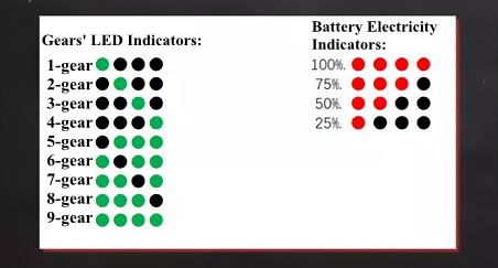 - Gear shift: Short press the button, the buzzer will beep and then the gear will be switched. After the switch is successful, the LED indicator will correspond to as shown in the picture