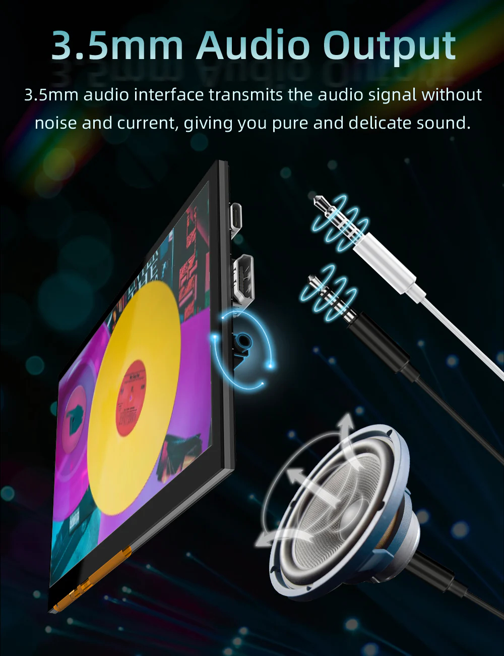 - Support audio output. Built-in audio decoding circuit, supports 3.5mm headphone jack audio output. 3.5mm audio interface transmits the audio signal without noise and current, giving you pure and delicate sound.