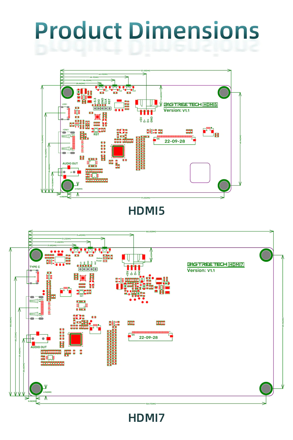 The HDMI 5 & HDMI 7 are developed for users of 3d printers using the Klipper system. It can work with Raspberry Pi4, PI4B+CB1, BTT PI, Manta M8P+CB1, Manta M4P+CB1, Manta E3EZ+ CB1, and other mini PC.