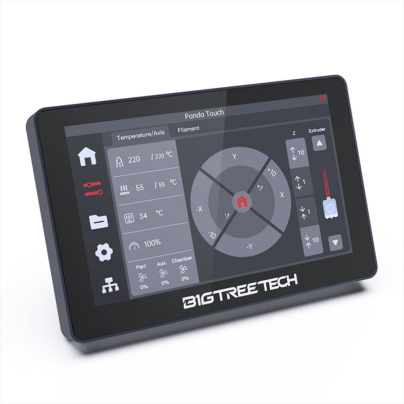 The Panda Touch is a 5'' touch screen. It offers a beautiful UI with convenient features and can be used as an alternative or a replacement screen for the Bambu P1P and Bambu P1S. It also interfaces with the X1 and A1 series and supports group printing and control for up to 10 Bambu Labs printers.