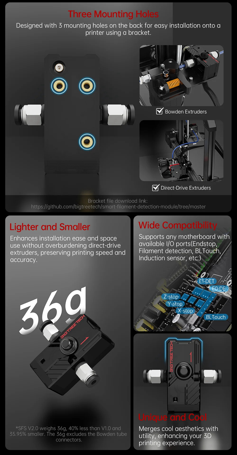 BIGTREETECH SFS V2.0 Smart Filament Sensor Filament Runout Sensor Module Accessory for 3D Printers