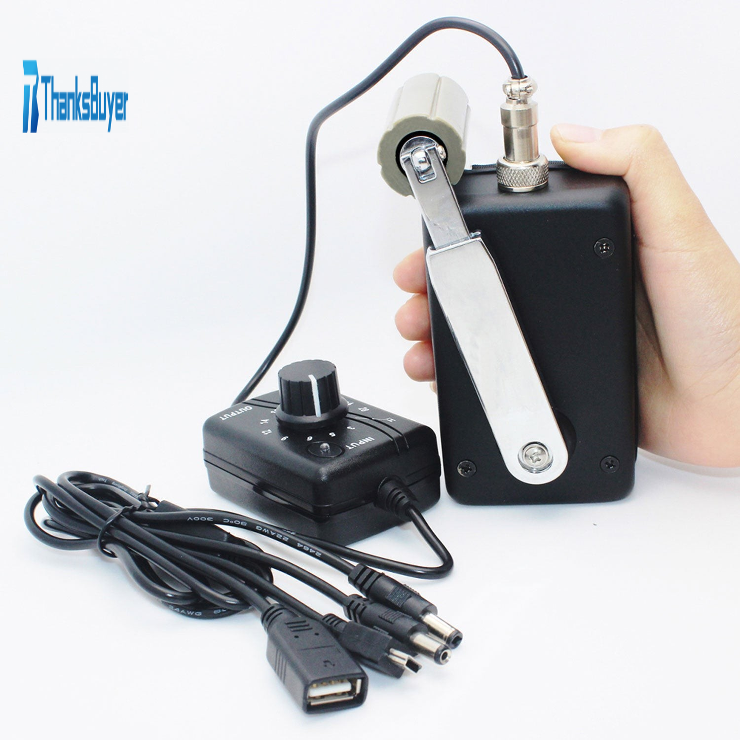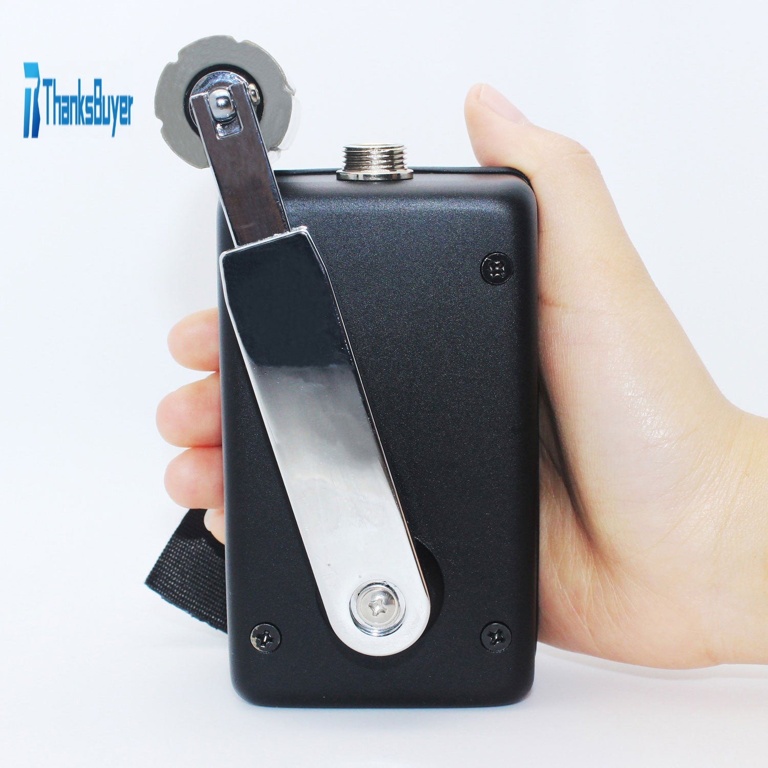 - This hand crank generator is designed to perform as an emergency power supply. It has valuable applications in a variety of conditions, including fighting forest fires, earthquake devastation, survival conditions, emergency communication, long term power disruptions, outdoor activities, geological exploration and marine vessels, etc. In areas without electricity or fuel for electrical power generation, this generator can supply power to different electronic products. It is suitable for low-power radio, interphone, laptops, mobile phones, CD players, M3-4 players, mobile TVs etc. It is also able to directly charge rechargeable lithium, nickel-metal hudride and lead-acid batteries, etc.