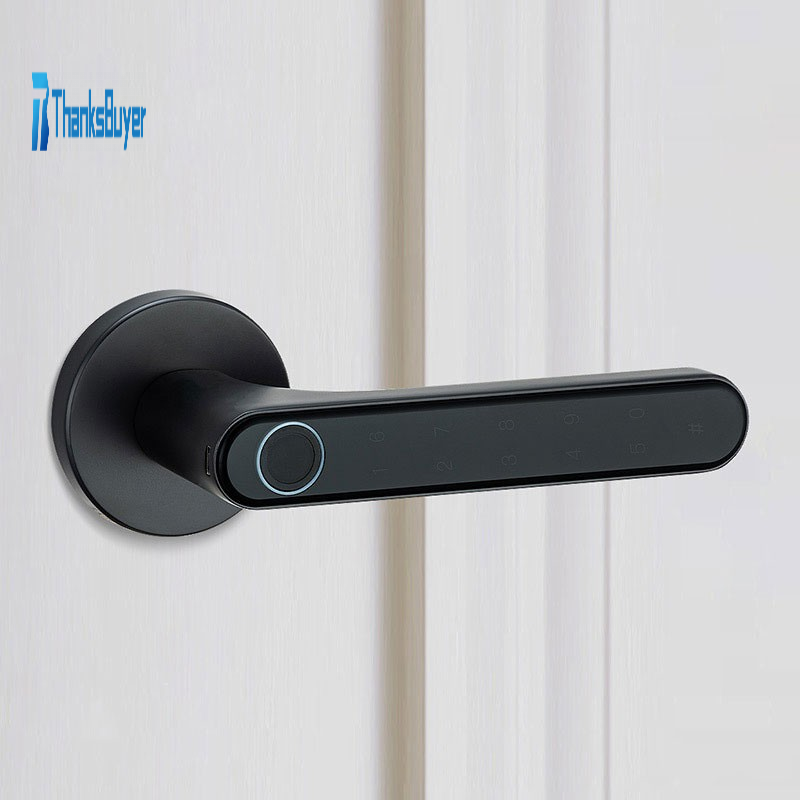Black Fingerprint Door Lock Smart Lock Biometric Door Lock with Handle for Home Apartment Hotel