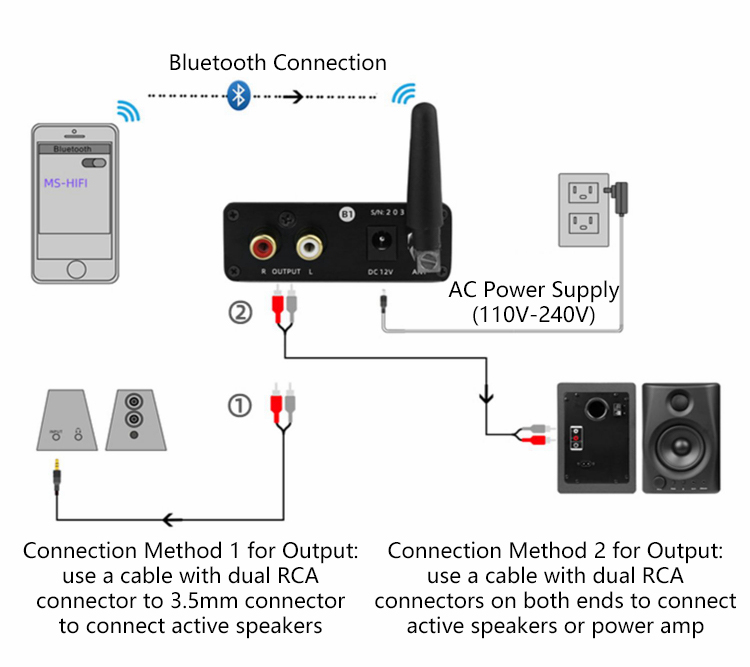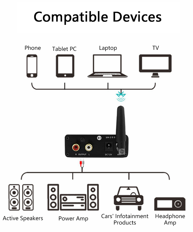 - Mobile phone bluetooth to speaker: Allows speakers without bluetooth to play wirelessly. Older amplifiers can also play richer music sources wirelessly