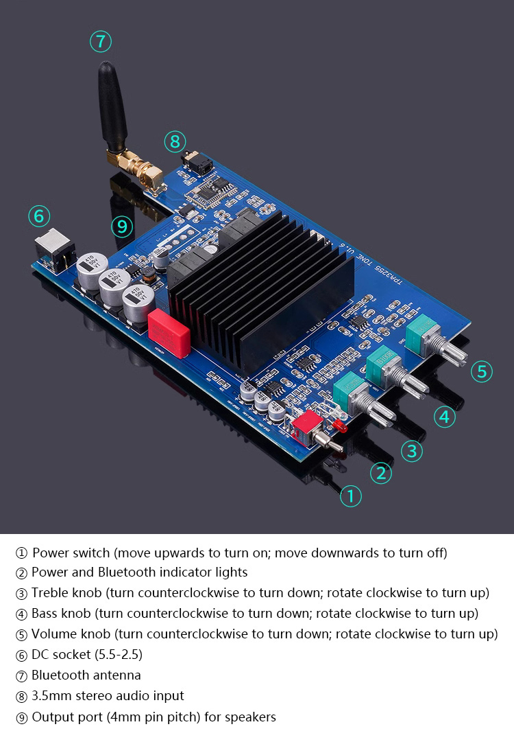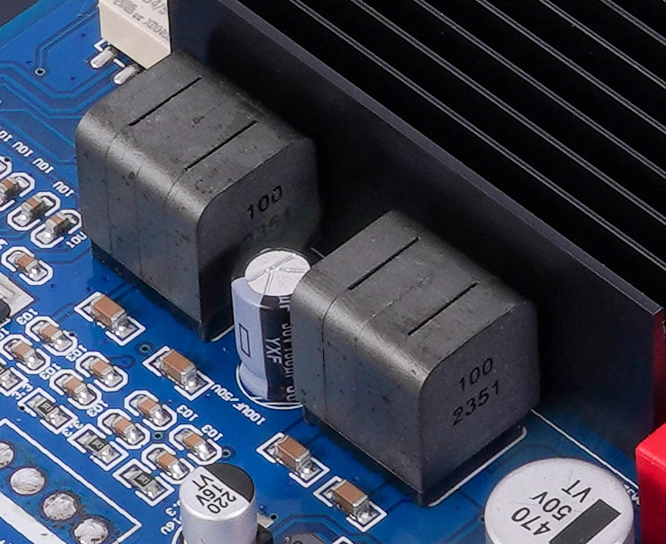 The product is designed for the most picky and HiFi audiophiles. It integrates the current TPA3255 power module with very low distortion and the Bluetooth decoding module QCC5125 supporting for LDAC and APTX. It also integrates PCM5102A high-end decoding chip. More quality components are used. As a result, the low-frequency sound is rich, the vocals are warm, and the high-frequency penetration is excellent. It is easy to use with treble and bass knobs. The price of this product is relatively high, because QCC5125 Bluetooth chip is used, and it also comes with independent decoding. Expensive black crystal common mode inductors are used as output inductors.