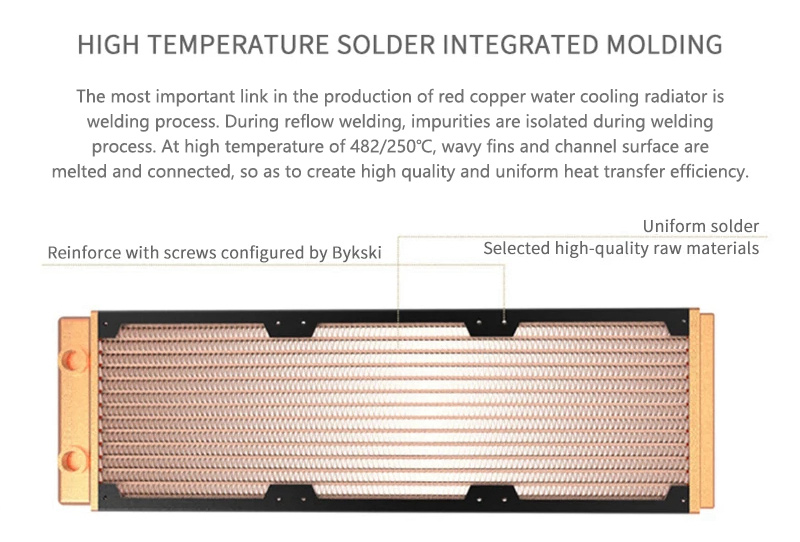 - The radiator is formed by a high-temperature integrated soldering process. Due to this, there will be a slight colour change in the copper, this is a result of the process not rust.