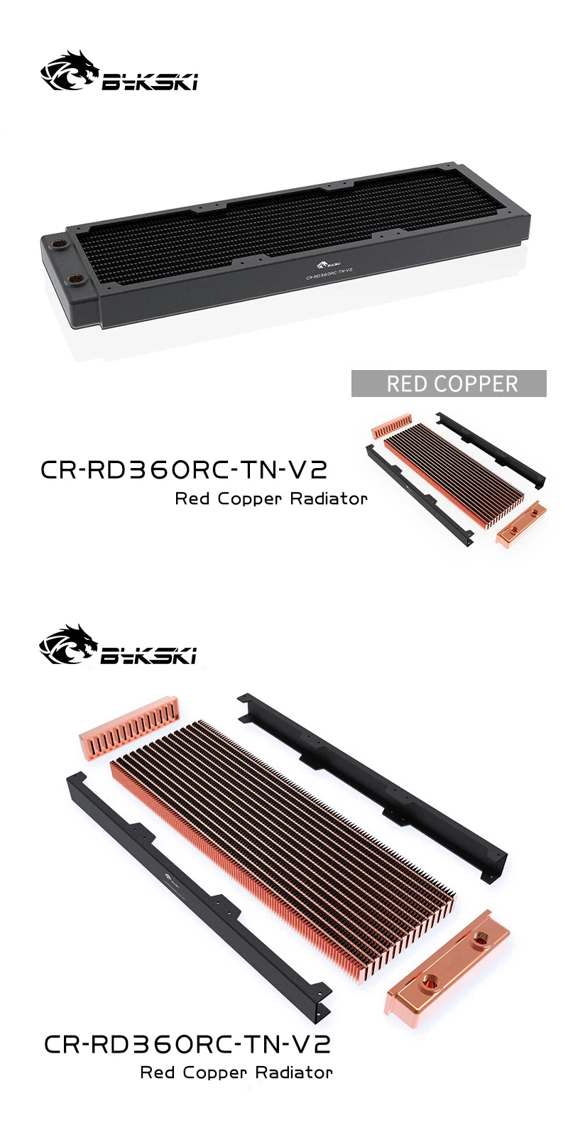 Bykski CR-RD360RC-TN-V2 RC Series Red Copper Radiator Water Cooling Radiator PC Accessory (Black)