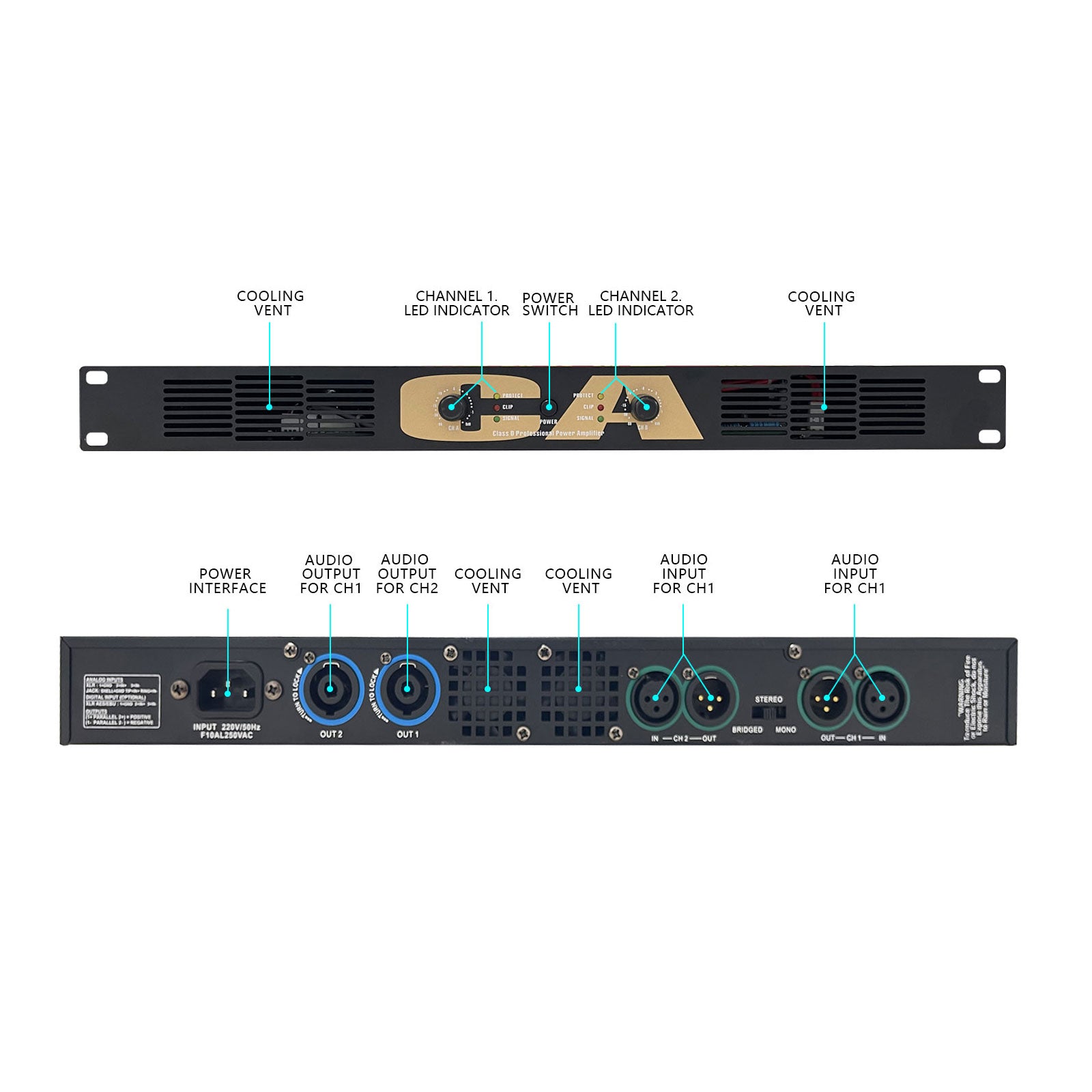CA 600Wx2 Professional Power Amplifier Digital Power Amp Two Channel Amplifier for Disco Performance