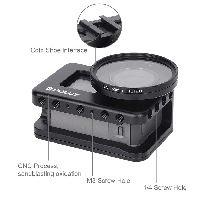 Camera Cage Aluminum Alloy w/ 52mm UV Lens & Cold-shoe Base & Base Adapter For DJI Osmo PU331B