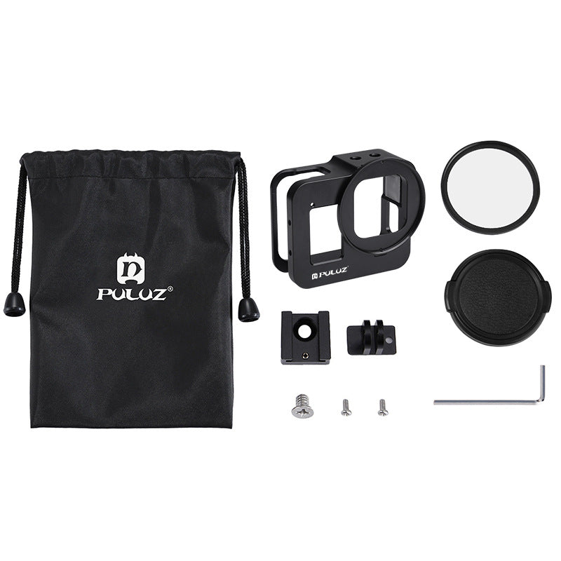 Camera Rig Camera Cage Housing Shell CNC Aluminum Alloy w/ 52mm UV Lens For GoPro HERO8 Black PU449B