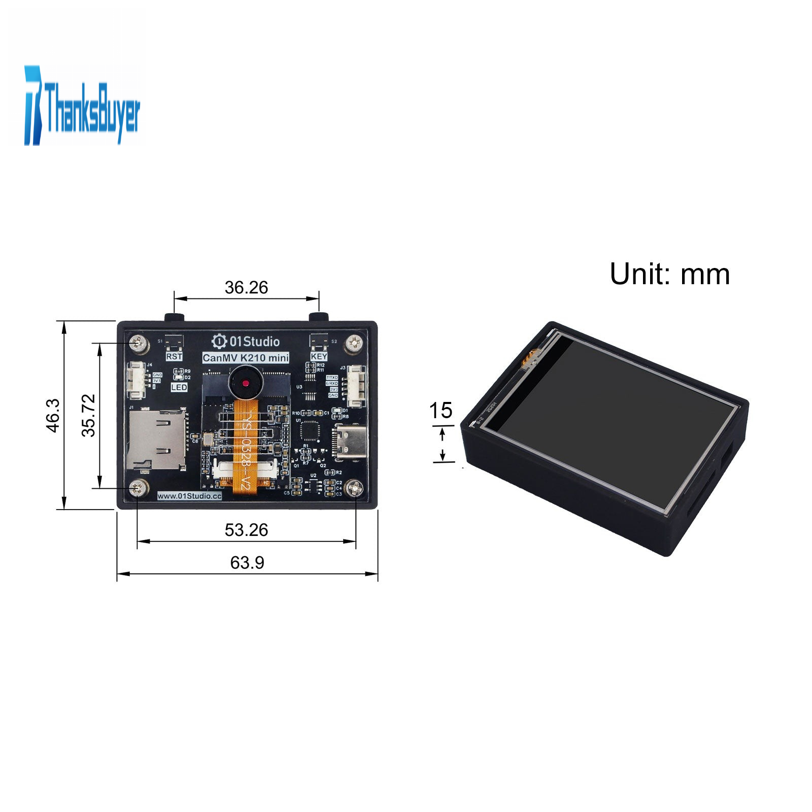 - Summary: The CanMV K210 mini is compact and easy to deploy to devices such as small cars and robots. It has a higher cost performance ratio and is suitable for pure visual application development. It can communicate with other MCUs through serial port. The appearance is a frosted shell and + acrylic protective plate.