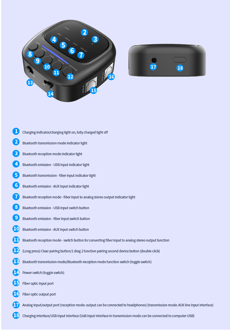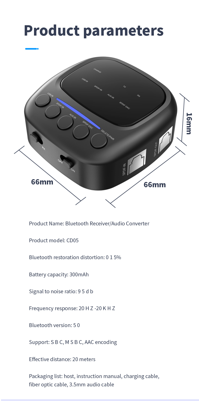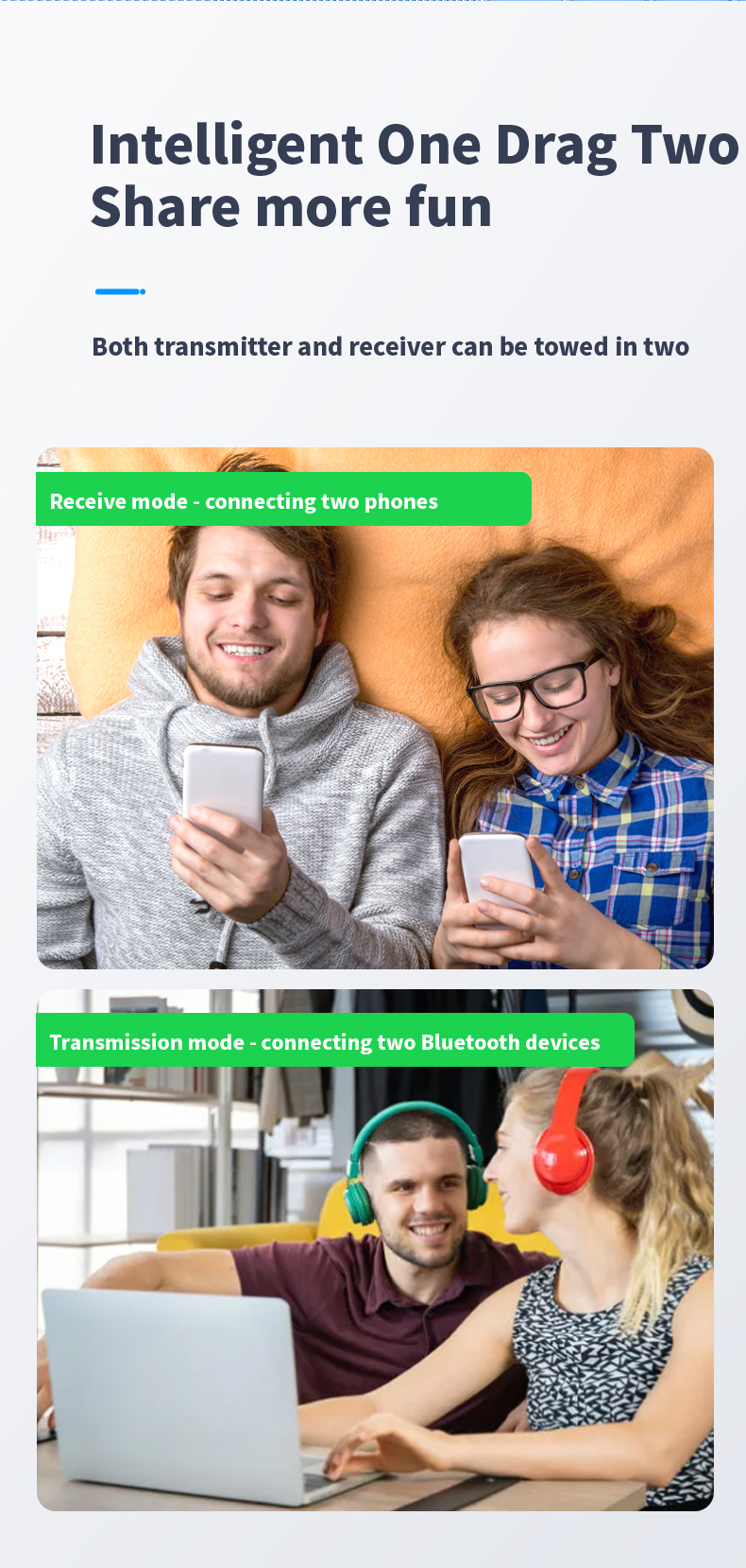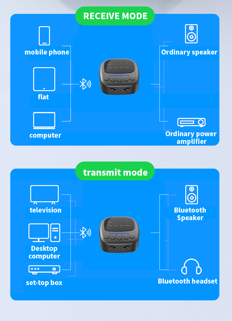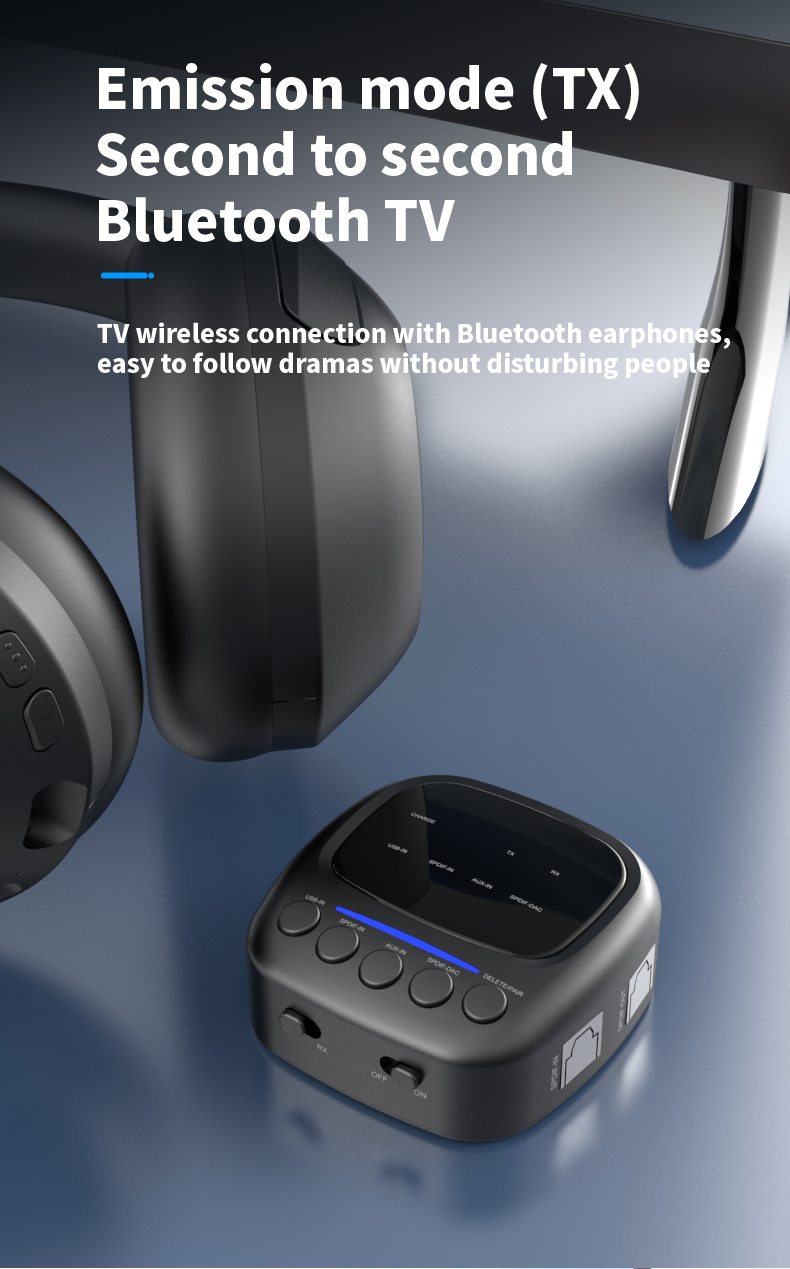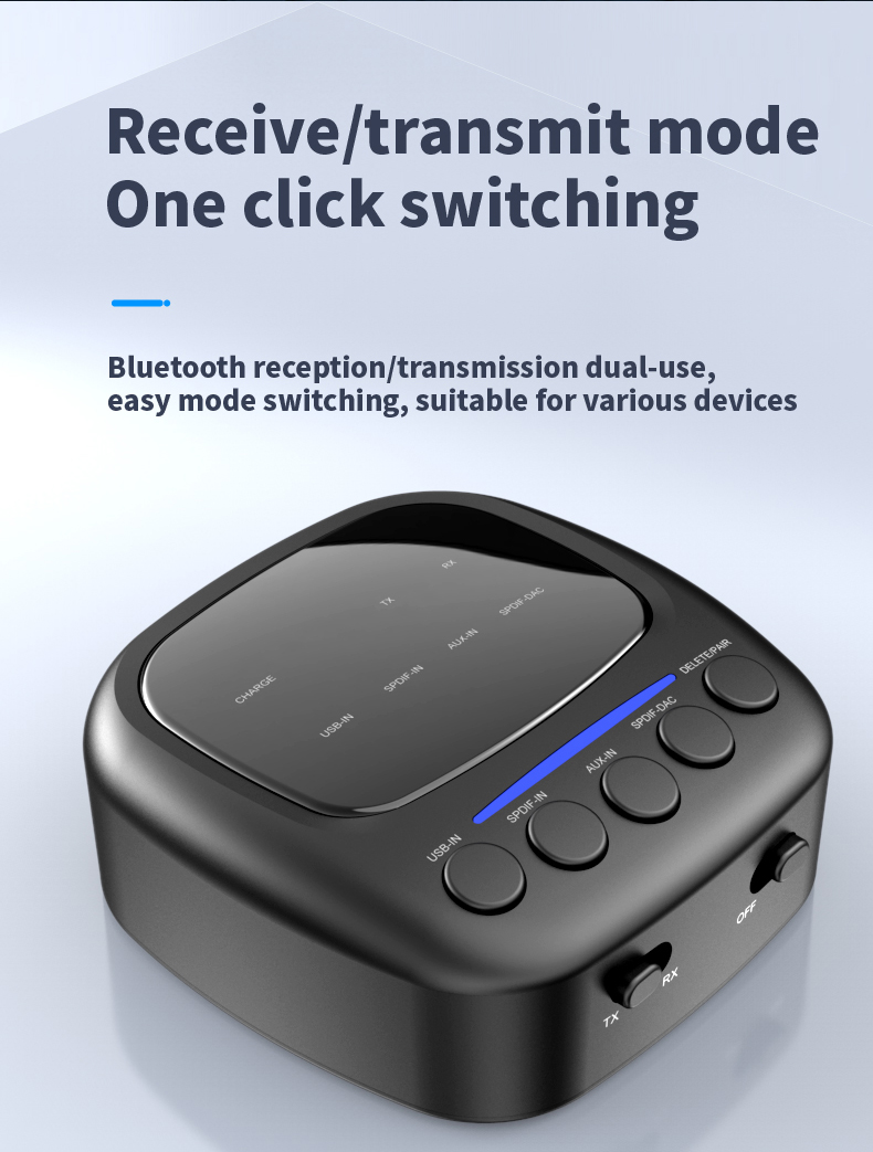 - Bluetooth reception/transmission dual-use, with easy mode switching, suitable for various devices.