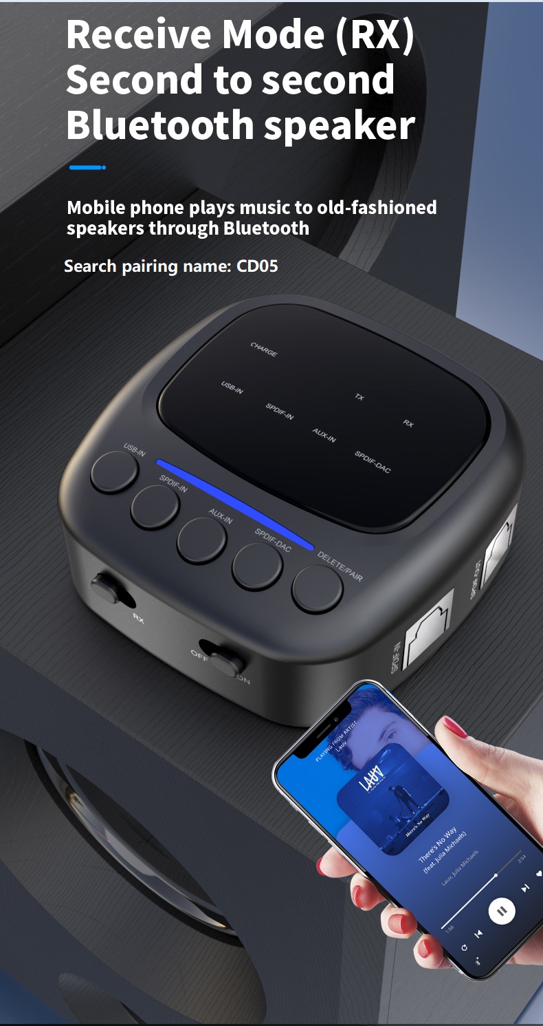 CD05 New Bluetooth 5.0 Transceiver 2 In 1 Optical Fiber Input and Output Wireless Transmitter and Receiver