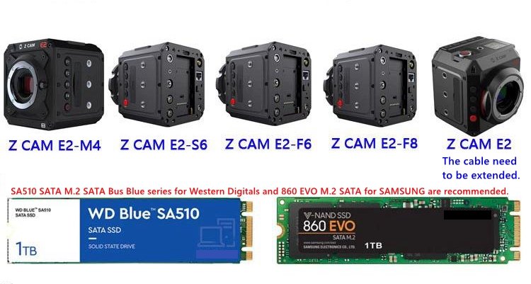 - SA510 M.2 SATA bus Blue series for Western Digitals and 860EVO M.2 SATA for Samsung are recommended.