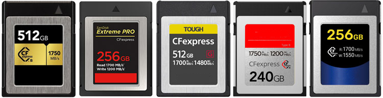 Supported CFexpress Cards 64GB-2TB: