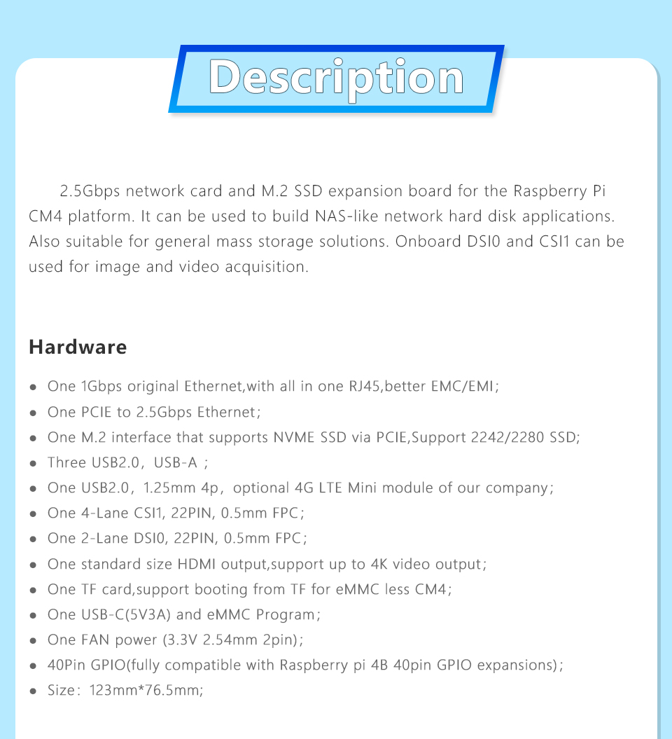 CM4_SSD_Dual Ethernet Expansion Board 2.5Gbps and Gigabit Ethernet PCIE NVME SSD M.2 2.5G (for Qualcomm 4G Version)
