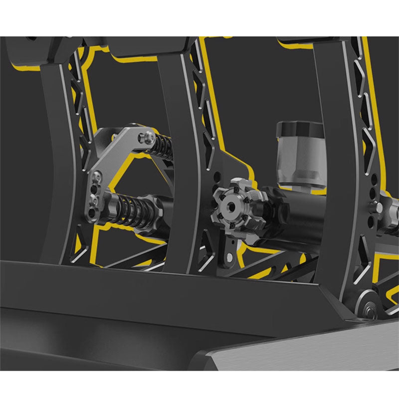 - The dual-stage hydraulic cylinder design provides a two-stage pedal feel, simulating the actual working state of wheel cylinder pistons in a real car's braking system, to deliver a more precise braking experience. The preload force of the front and rear stages can be independently adjusted, allowing drivers to personalize and fine-tune the system according to their individual preferences.