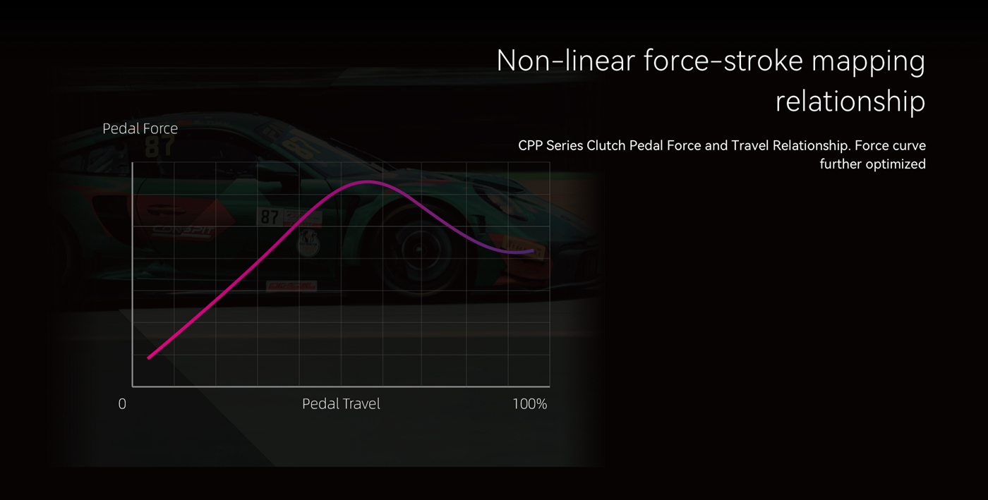 - Non-linear force-stroke mapping relationship: CPP series clutch pedal force and travel relationship. Force curve further optimized