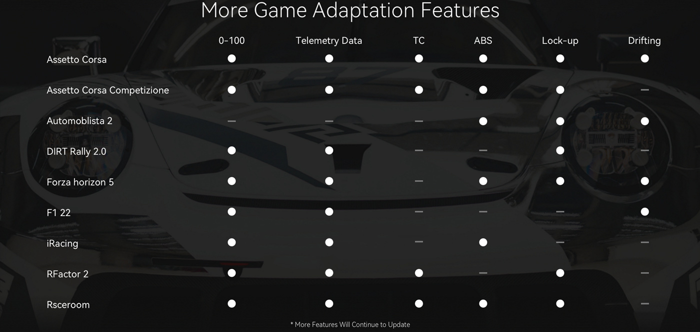 - Rich software features: Implemented many practical simulated racing features. Collaborate with INSPEDD RACING for Tuning