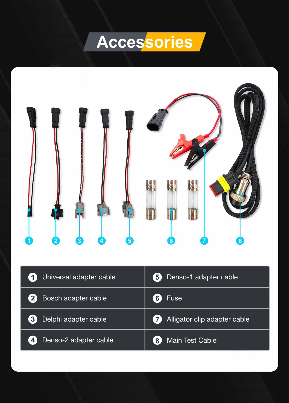 - Test injector: for BOSCH, Denso and Delphi common rail injectors