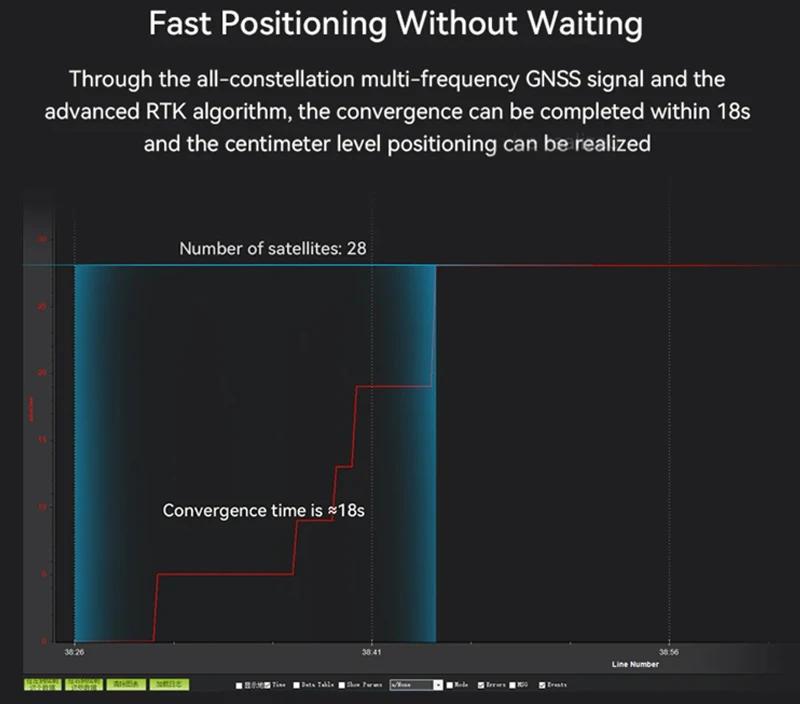 - High-performance data sharing capabilities, fully optimized multi-dimensional RTK matrix pipeline calculations, RTK processing capabilities increased by more than 80%, can achieve more than 28 directional solutions and recapture time within 1s. Effectively deal with the continuity and reliability of positioning and orientation output in complex environments.