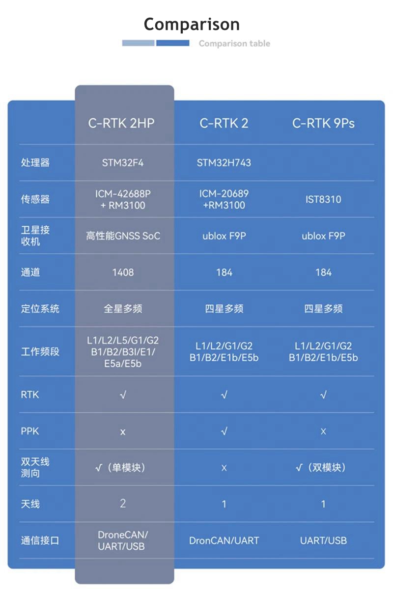 - C-RTK 2HP is a all-constellation multi-frequency high-precision positioning receiver module. Using a new generation of high-performance GNSS SoC chips, a single chip completes the baseband and RTK solving functions.