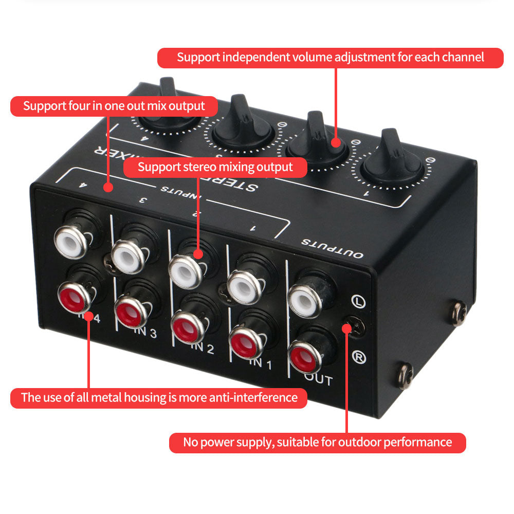CX400A Stereo Mini Audio Mixer High Performance 4-Channel Passive Dual Mode Mixer with Zero Background Noise
