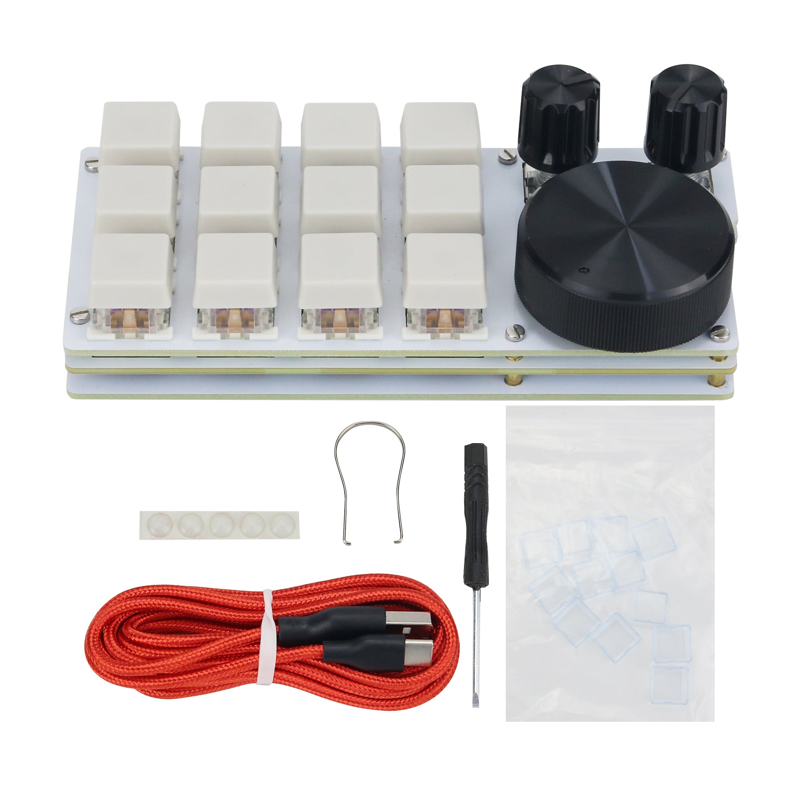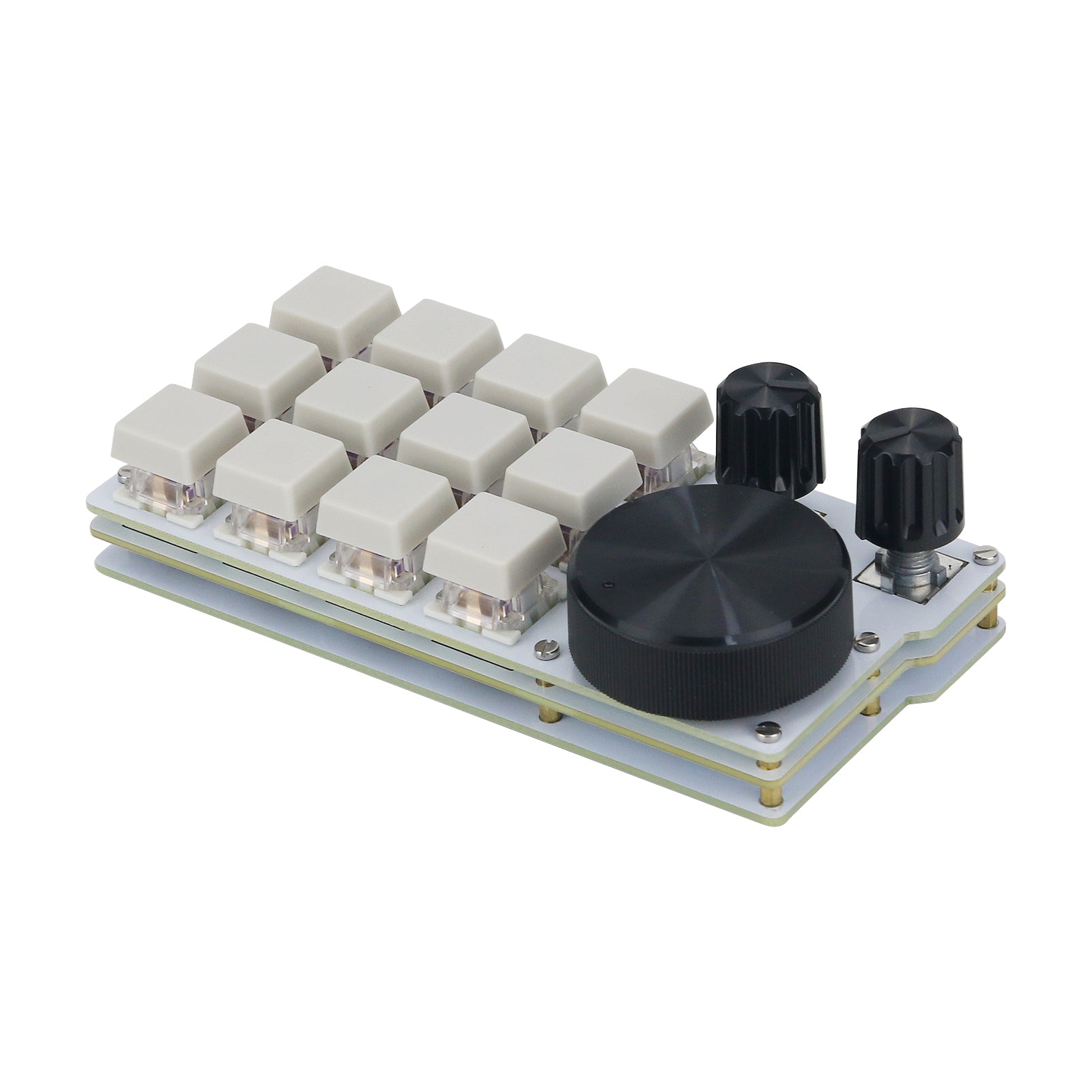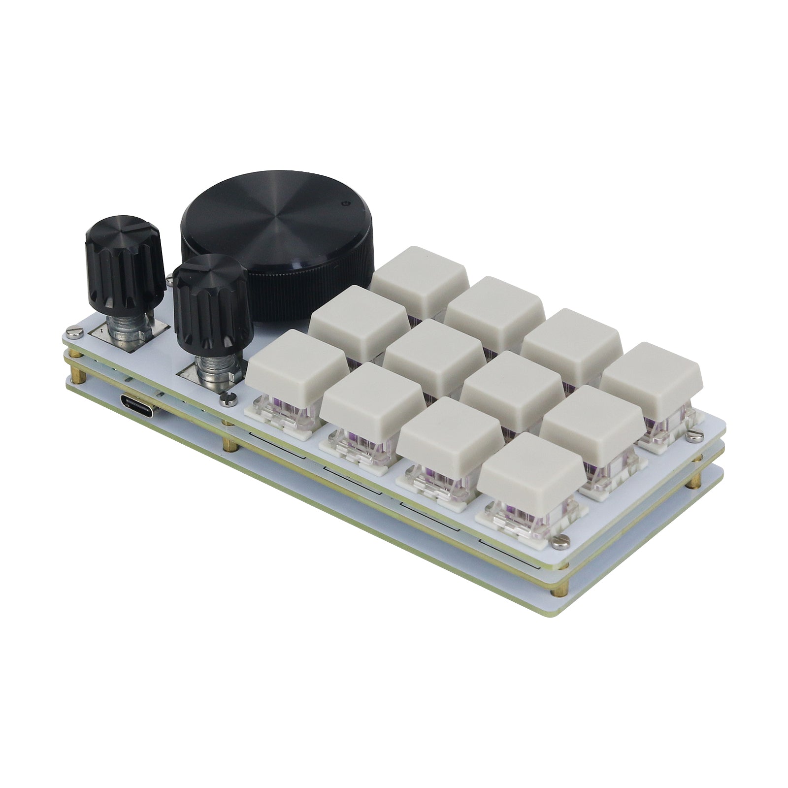 - Type-C interface, 12 hot-swappable shaft bases, 12 RGB switch lights and 3 knobs