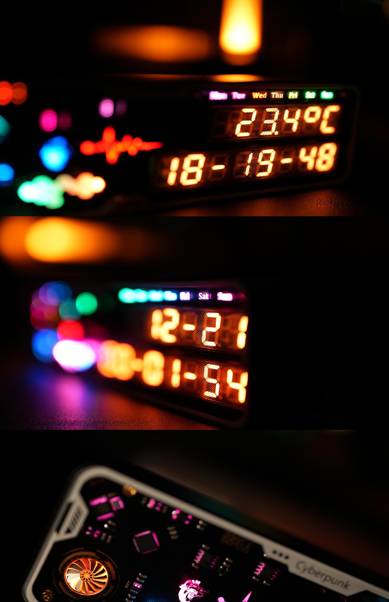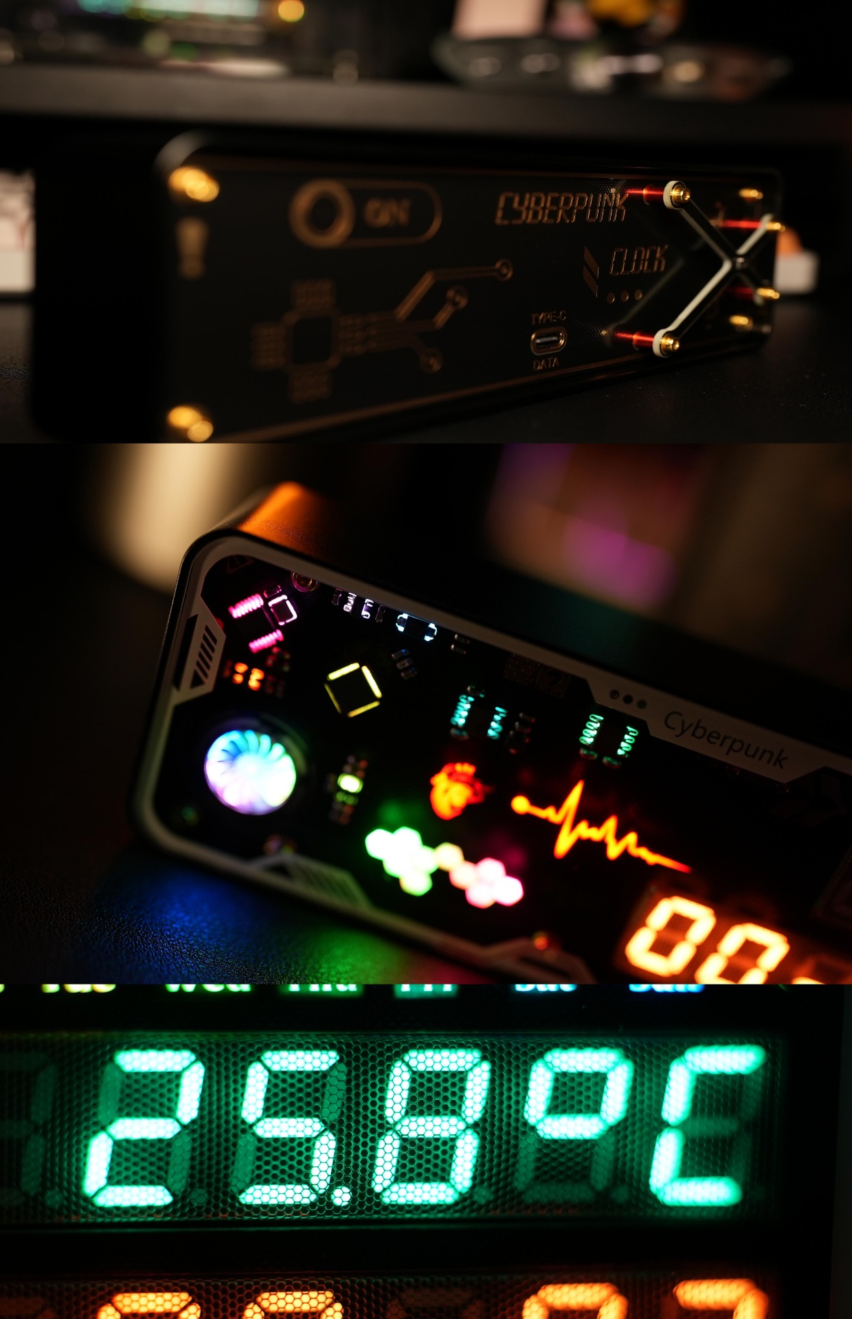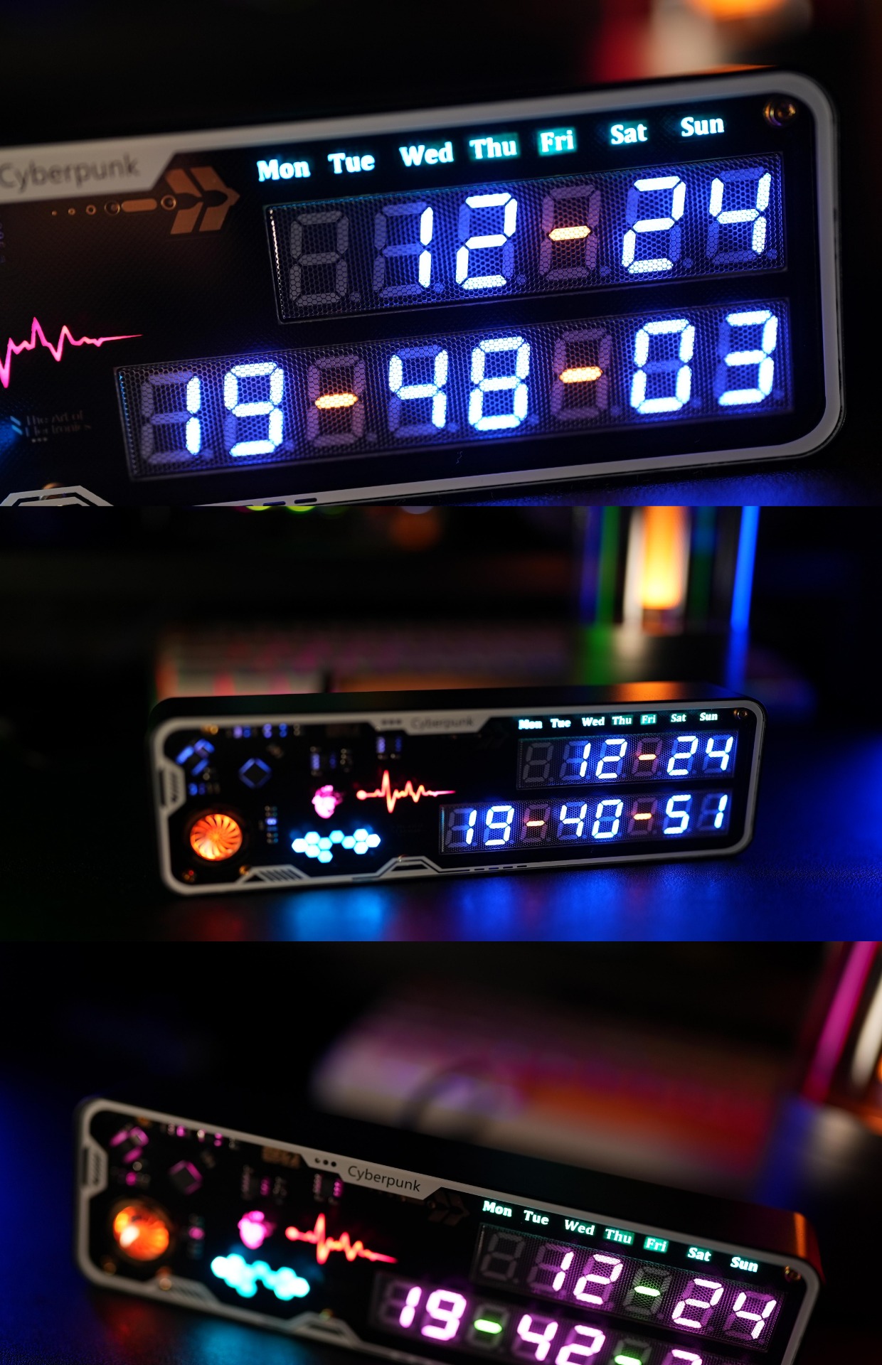 Cyberpunk RGB Nixie Tube Clock Creative Desktop Decoration LED Clock Support Day Timing and Countdown