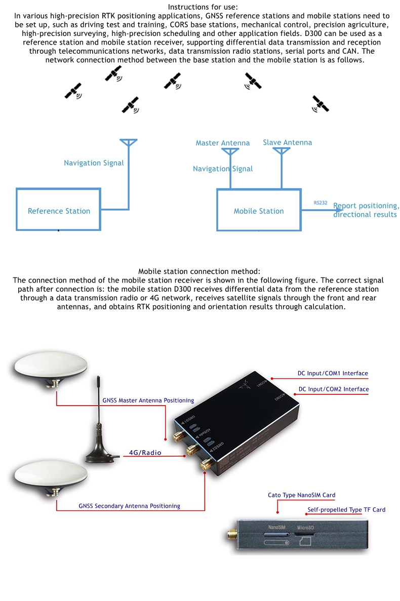 - High Precision: built-in full constellations and frequency high precision positioning and orientation module, support BDS B1/B1, GPS L1/L2, GLONASS G1/G2, GALILEO E1/E5, SBAS, QZSS, etc.