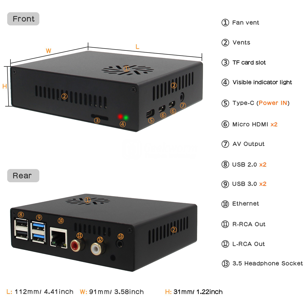 - Power supply: 5Vdc +/-5% , ≥3A (Via Type-C port of Raspberry pi 4) (Strongly recommended to use official 5V 3A type-C power adapter for Raspberry Pi)