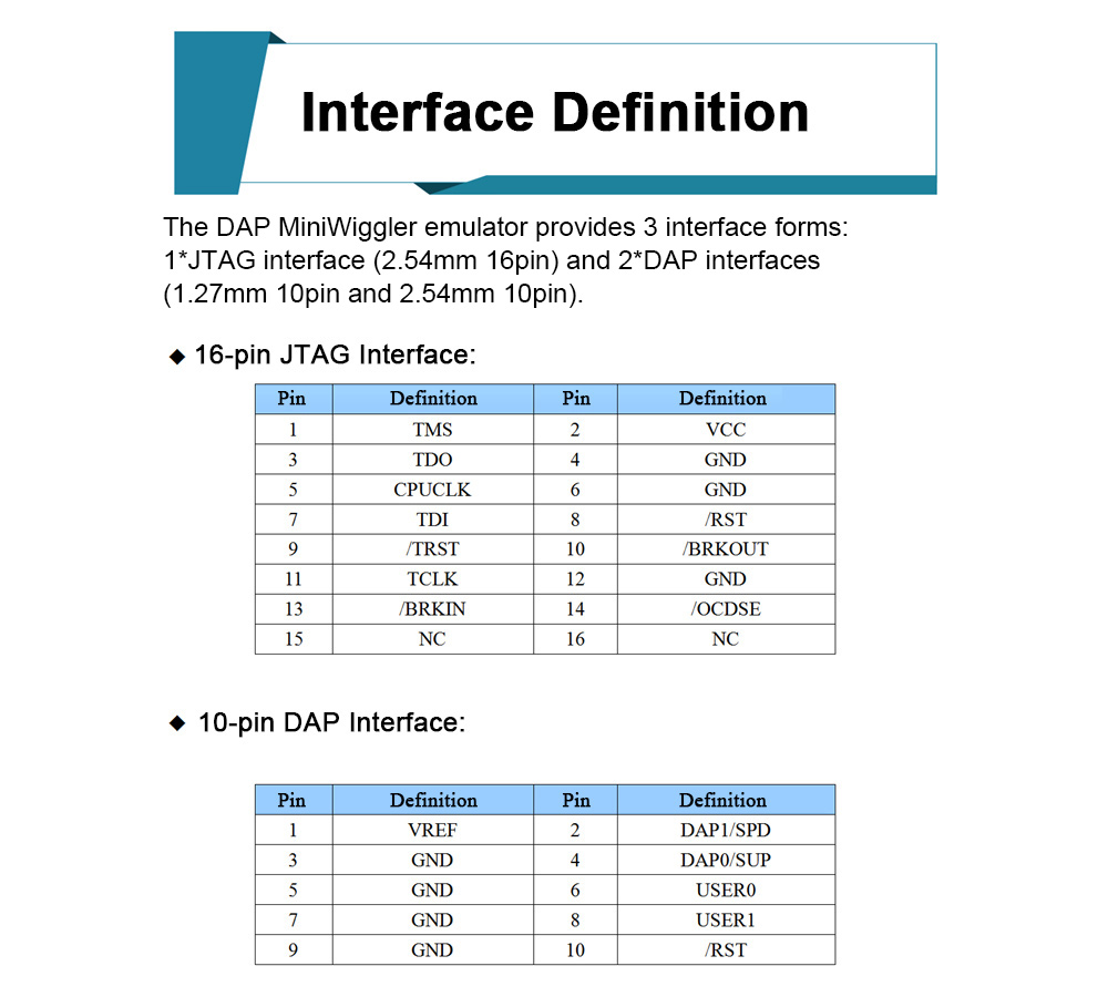 - 1 x 10-pin DAP connection cable (1.27mm pitch)