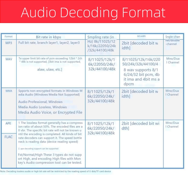 - Audio output signal power: ≤50mW (can support direct push headphones, if you need to push speakers, you need an external amplifier)