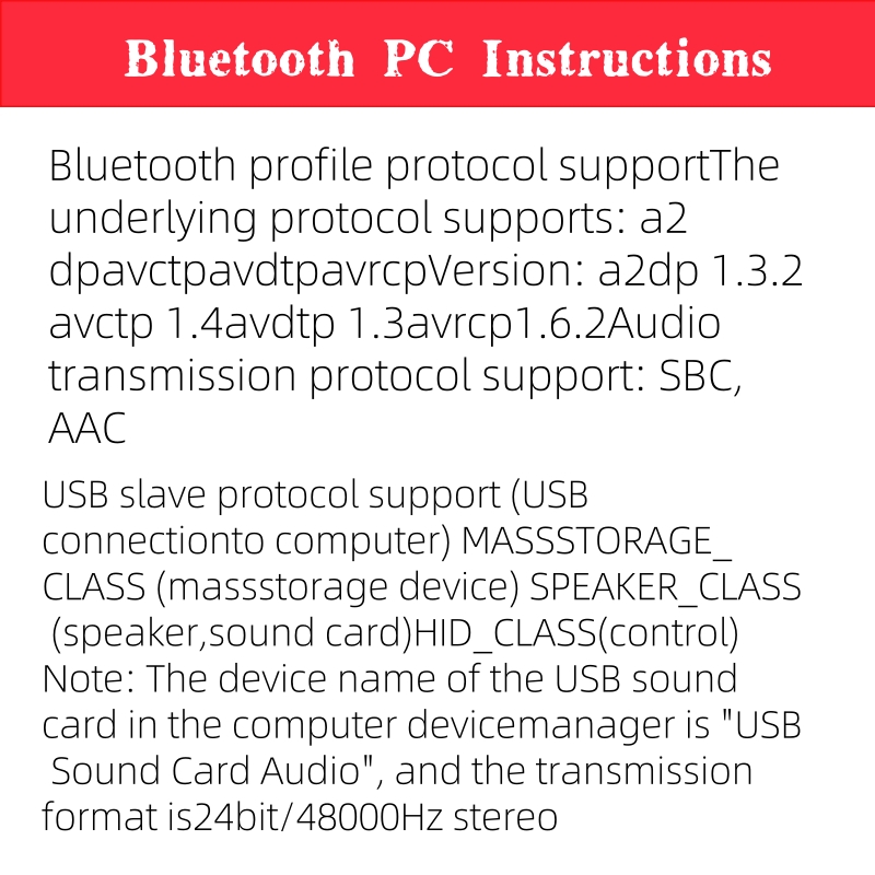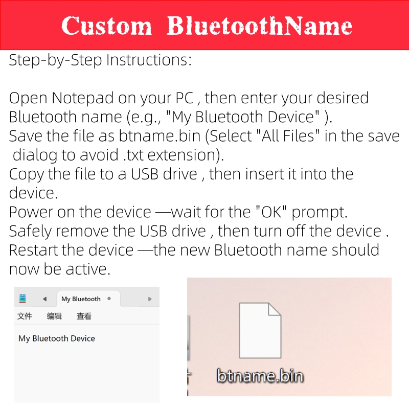 - Bluetooth name: Bluetooth Audio (users can change it)
