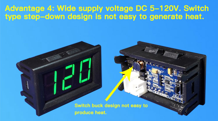 - Power supply adopts a switch-type step-down design, which can be used for a long-term maximum voltage of 120V.