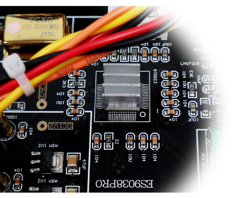 - Clock crystal oscillator: 0.1PPM high-precision low-phase noise temperature-compensated crystal oscillator is used to provide the core reference frequency for the ES9038PRO chip. The effect positioning is accurate, and no details are omitted