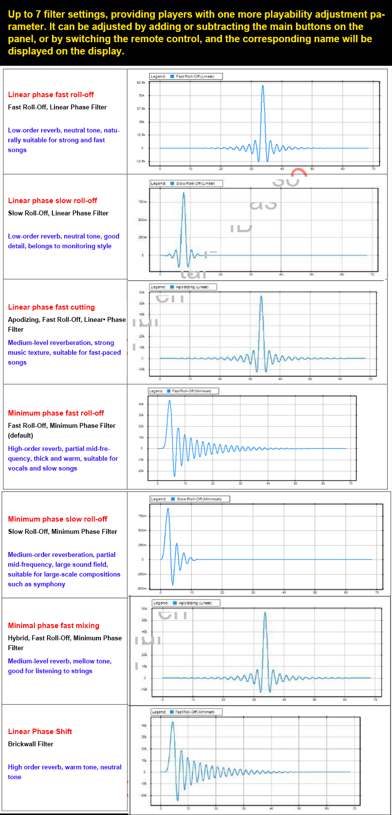 - ES9038PRO decoding chip: SNR up to 129DB. It supports 32BIT, I2S/DSD/SPDF input; DNR: 135DB/MONO, 129DB/8CH, THD: -120DB. With the highest indicators and analytical power, it can reveal the most subtle places of music
