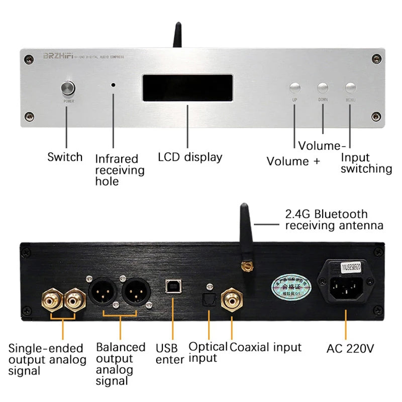 - Coaxial and optical: PCM 44.1K~192K 16~24bit (COAX input supports DOP64)