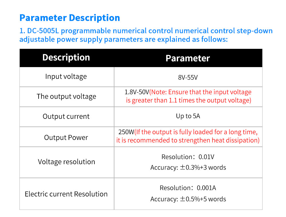 DC5005L Programmable Voltmeter Ammeter Voltage Current Detector Adjustable Buck Power Supply Module