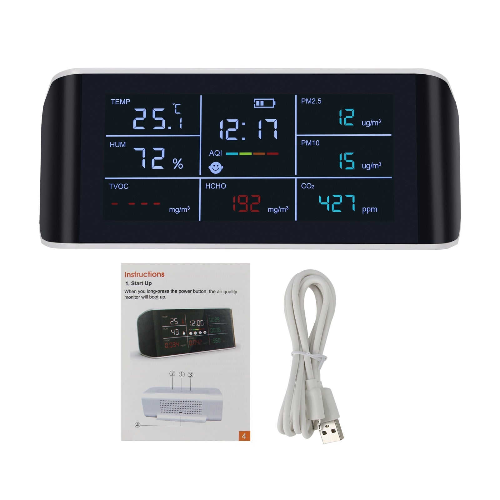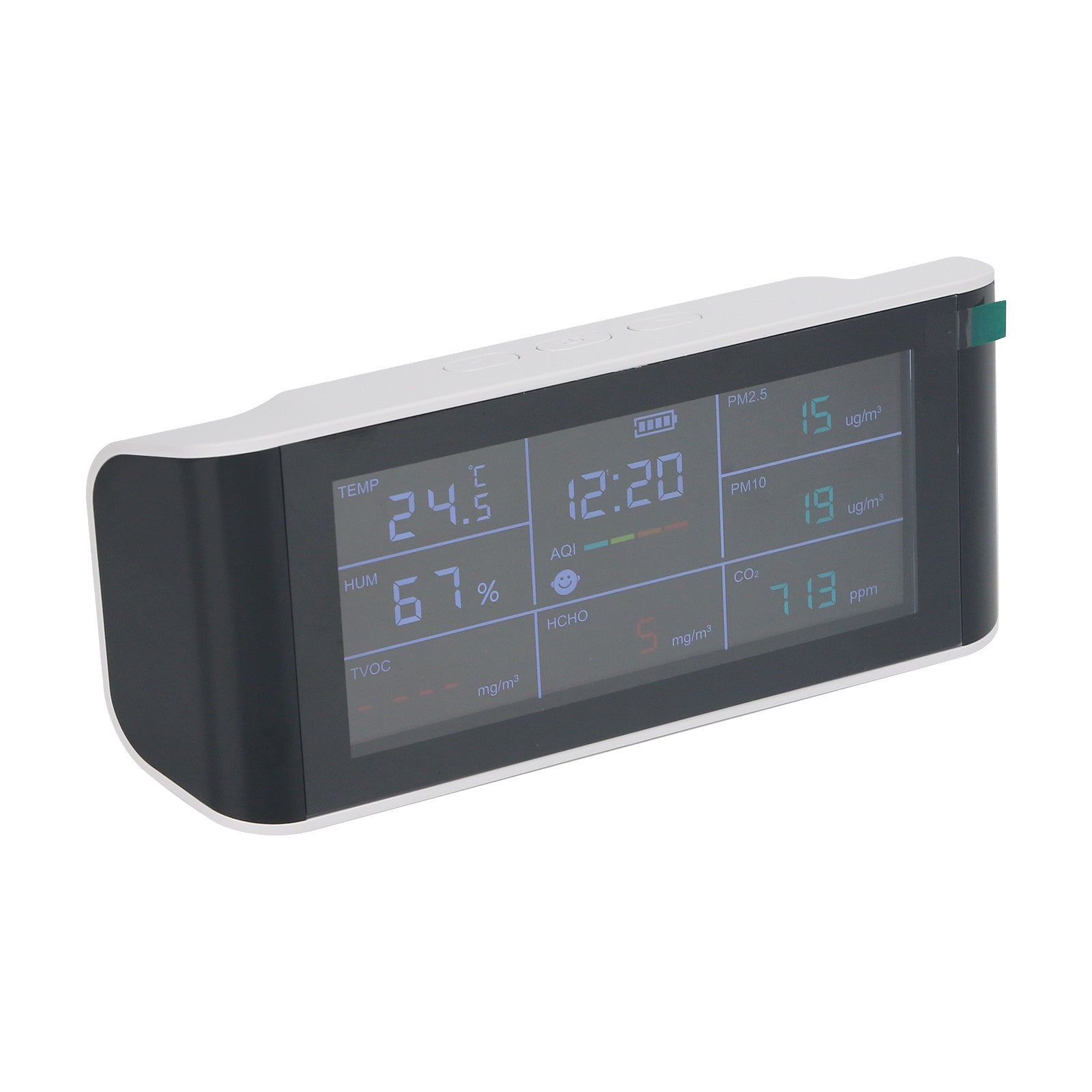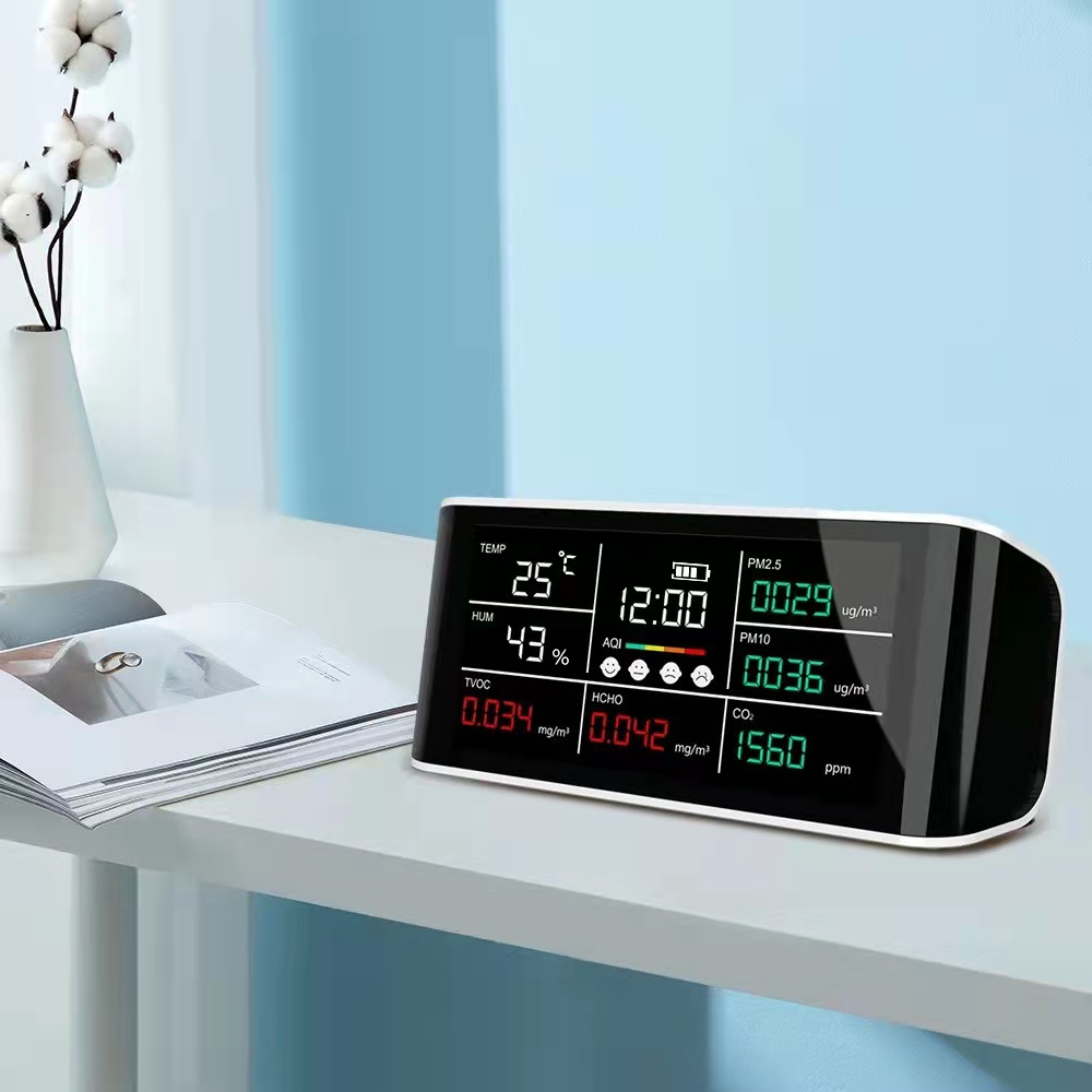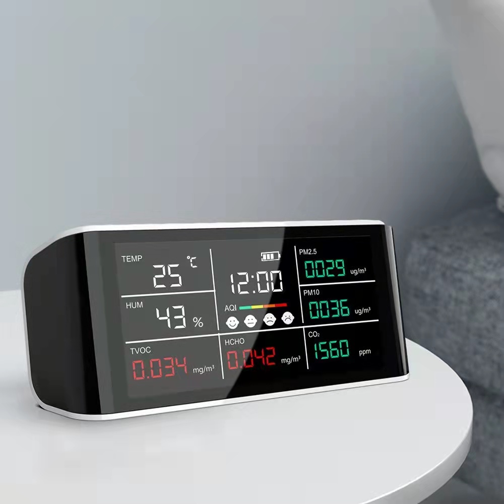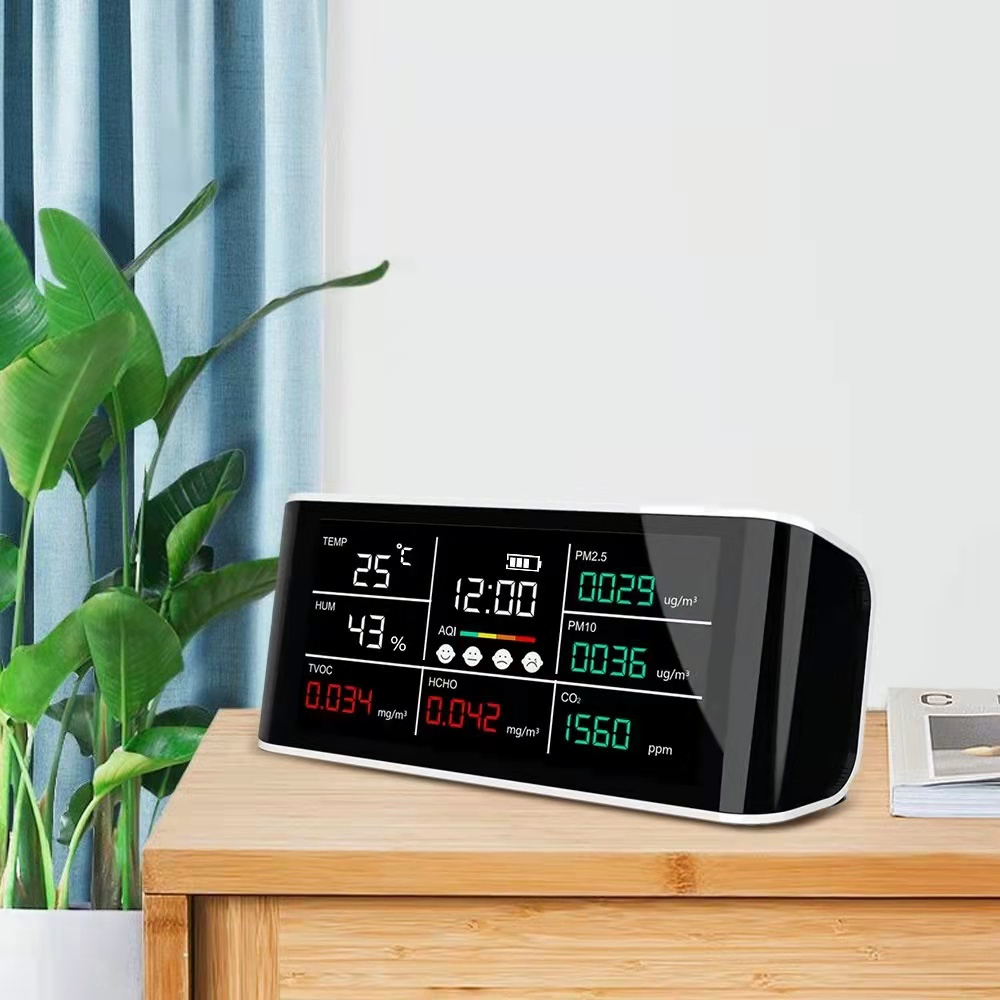 - Detection function: CO2, PM2.5, HCHO, TVOC, Temperature, Humidity