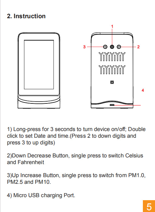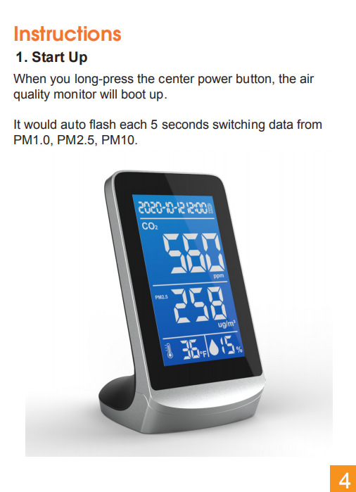 This product is an air quality monitor that detects Carbon dioxide(CO2), Particulate Matter <2.5 micron-sized particles(PM2.5/1.0/10), Temperature, and Humidity. It combines sensors real-time monitoring of Carbon dioxide (CO2), PM2.5/1.0/10, temperature, and humidity on its digital LCD display.