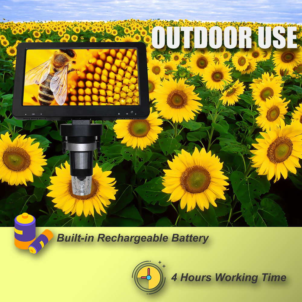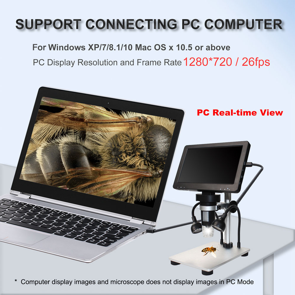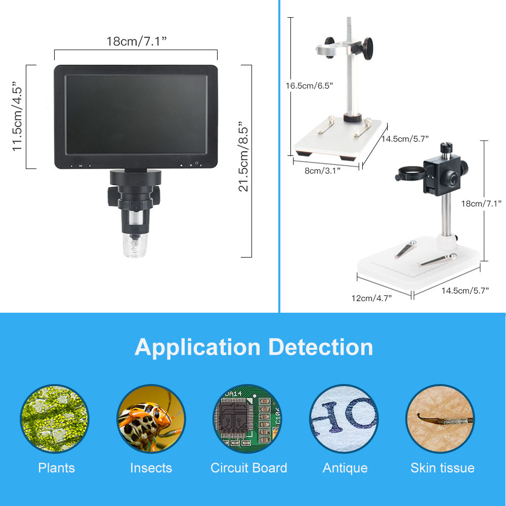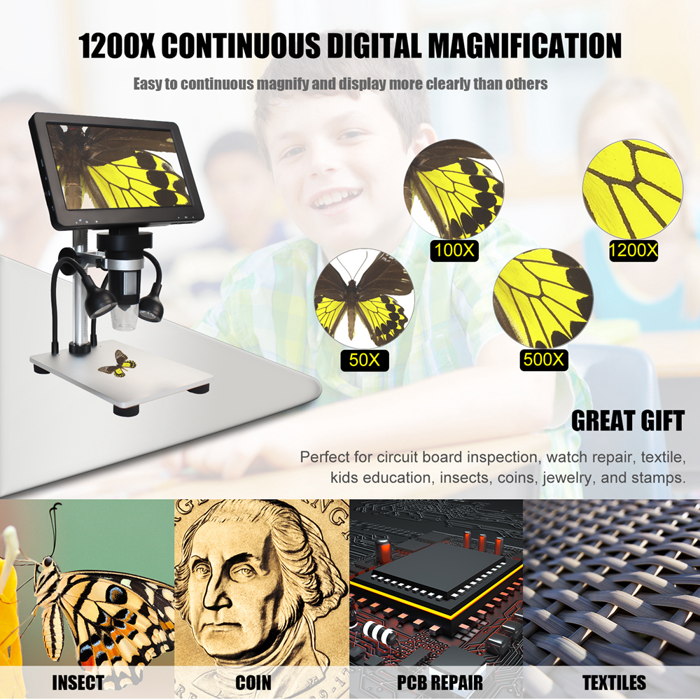 DM9 12MP 1200X Electron Microscope Magnifier Industrial Microscope With 7" Screen Adjustable Angle