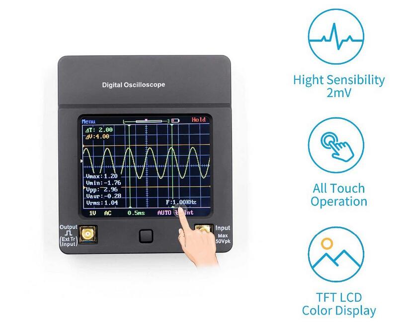 -Come with 3.3V square wave test signal, the frequency can be set to Hz/10Hz/100Hz/1KHz/10KHz/100KHz/1MHz/440Hz.