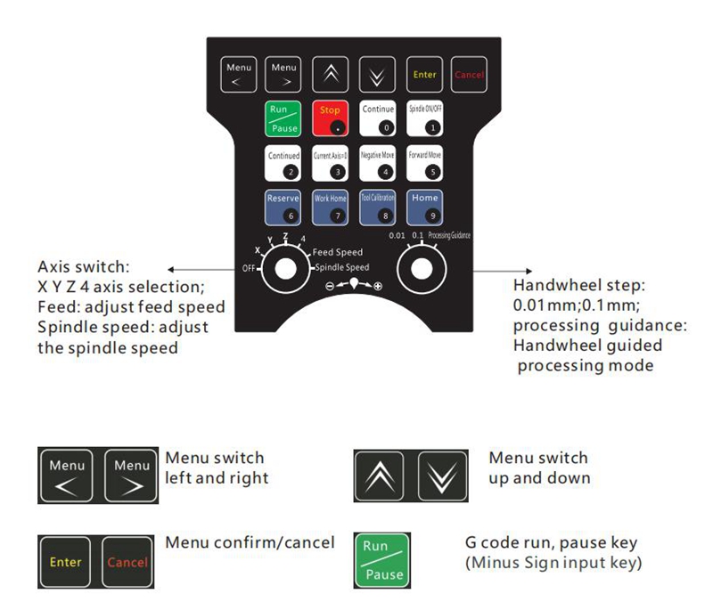 - 3.5-inch LCD screen, displaying software status, workpiece coordinate, machine coordinate, IO status and other information.