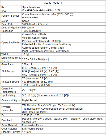 Unlike the previous entry-level servos, the XL330 series has a voltage range of 3.7V~6V. It has many working modes such as current-based position control and current control.