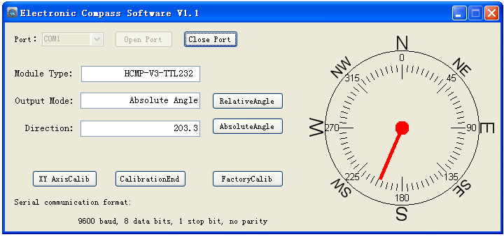 The compass communicates with host computer in a 232 manner. High-grade filtering guarantees stable output, has a calibration function, and can set the relative angle function to adapt to different working environments.
