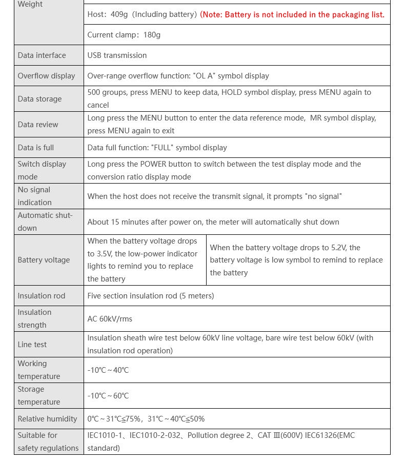 - When not using the insulation rod, it can also be used as a high-precision low-voltage clamp ammeter, leakage current meter, can accurately measure the current of 0.1mA, it has the characteristics of easy to use, easy to carry.