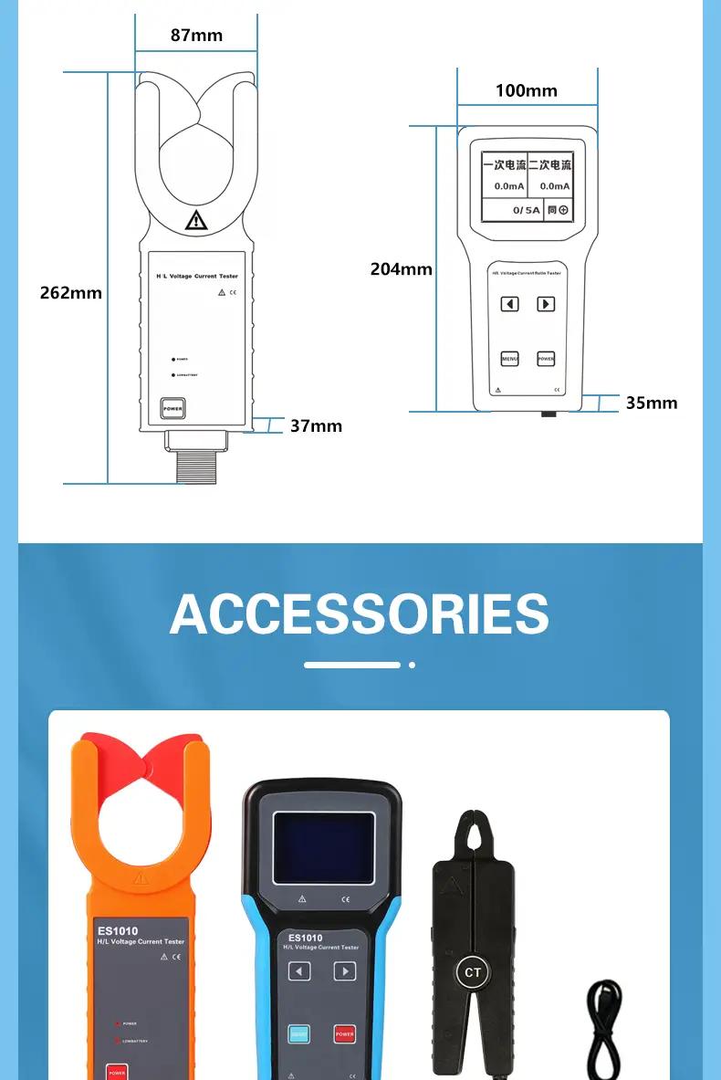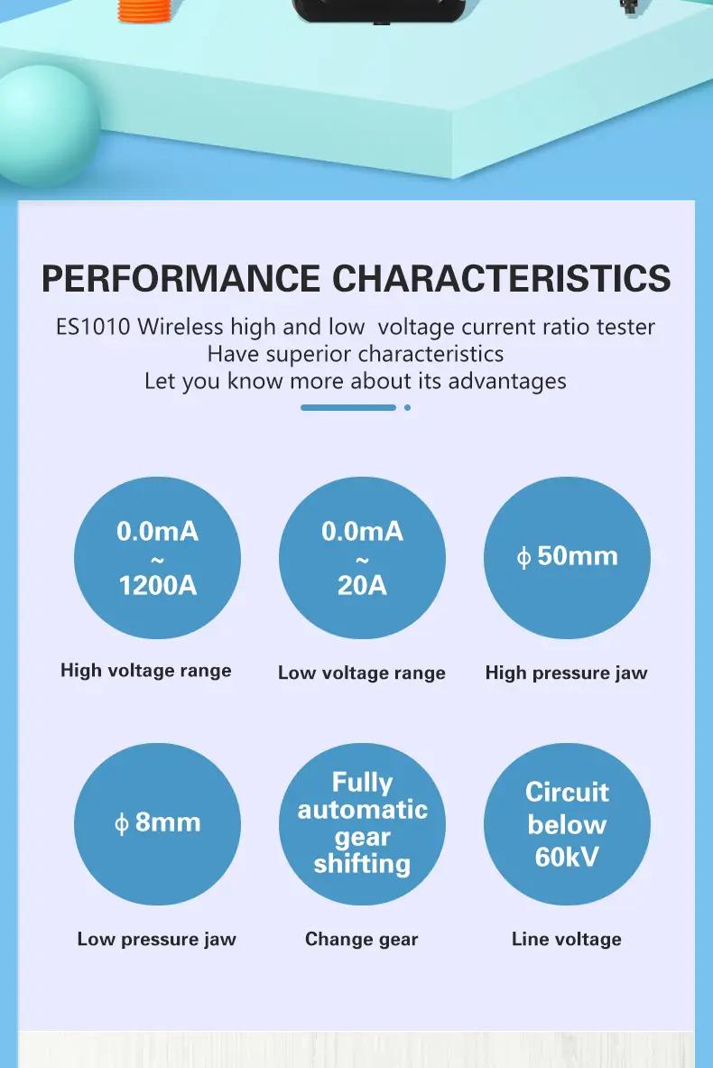 ES1010 0mA-1200A Digital Wireless H/L Voltage Current Ratio Tester TTR Tester with Current Clamp and Insulation Rod