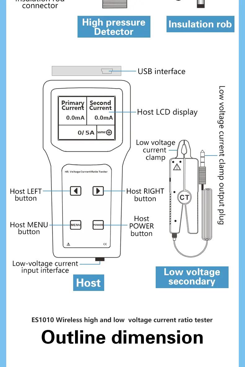 - Wireless high and low voltage ratio tester is also called high and low voltage CT wireless ratio tester. It is composed of high voltage detector, low voltage current clamp, main engine, high voltage insulation rod, monitoring software and communication line. The instrument adopts fast digital circuit processing technology. It can connect insulation rods to measure high-voltage current transformers , primary transformers, high-voltage primary current, low-voltage secondary current, and can be calculated under the condition of not disconnecting or powering on site. Change ratio, phase, polarity, and ratio error below 60kV.